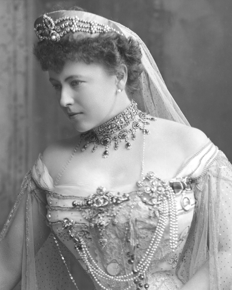 References: Biog: (Grand Duke Michael) Hugh Montgomery-Massingberd ed., Burke's Royal Families of the World, Vol 1, London, 1977, p. 472a; The Times, 27 April, 1929, p. 17a; The Times, 1 May 1929, p. 15f. (Countess de Torby) Hugh Montgomery-Massingberd ed., Burke's Royal Families of the World, Vol 1, London, 1977, p 241b; The Times, 16 September 1927, p. 13e & 17 September, p. 12a. (See also, The Times, 9 April, 1891, p. 5d; Baroness de Stoeckl, Not all Vanity, London, 1950; Baroness de Stoeckl, My Dear Marquis, London, 1952; David Chavchavadze, The Grand Dukes, New York, 1990; Raleigh Trevelyan, Grand Dukes and Diamonds: The Wernhers of Luton Hoo, London, 1991.) Occasion: - Costume: - Costume Supplier: - Orders, Decorations & Medals: (Order of St. Andrew First Called) R. Werlich, Russian Orders, Decorations and Medals, Washington, 1981, p. 1. (Royal Victorian Order) Burke's Peerage. (Badge, Alexander Cadet Corps) R. Werlich, op cit, p 72; (Queen Victoria Jubilee Medal & King Edward Coronation Medal) Howard N. Cole, Coronation and Royal Commemorative Medals 1887-1977, London, 1977. (Others) Andrew Litherland, Spink's medal department. Jewellery: - Reproduced: Julius Bryant, The Iveagh Bequest: Kenwood, English Heritage, 1990, p 67; (Version, Countess Torby only) The Car, 4 February 1902, p 359; Madame, 8 August 1903, p 263; The Lady's Pictorial, 7 March 1903, front page; The Ladies' Field, 14 February 1903, front page; Madame, 6 August, 1904, p 253; A.C. Fox-Davies, ed., Their Majesties' Court 1906, London, 1907, plate 424; The Gentlewoman, 25 April 1914, p 565.