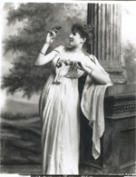 Biog: Actress; had successful tour in America in 1901. Role: - Date: 8 October 1897. Occasion: - Location: The Lafayette studio, 179 New Bond Street, London. Descr: TQL standing. Costume: - Costume Designer: - Costume Supplier: - Jewellery: - Furniture & Props: Painted backdrop; studio column.