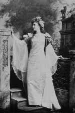 Biog: Twin daughter of 8th Duke of Manchester.(1) Role: Laura de Sada AD 1300. Date: 23 August 1897. Occasion:The Devonshire House Ball, 2 July 1897. Location: The Lafayette Studio, 179 New Bond Street, London, W. Descr: FL standing. Costume: - Costume Supplier: -Furniture & Props: Painted backdrop; studio balustrade.